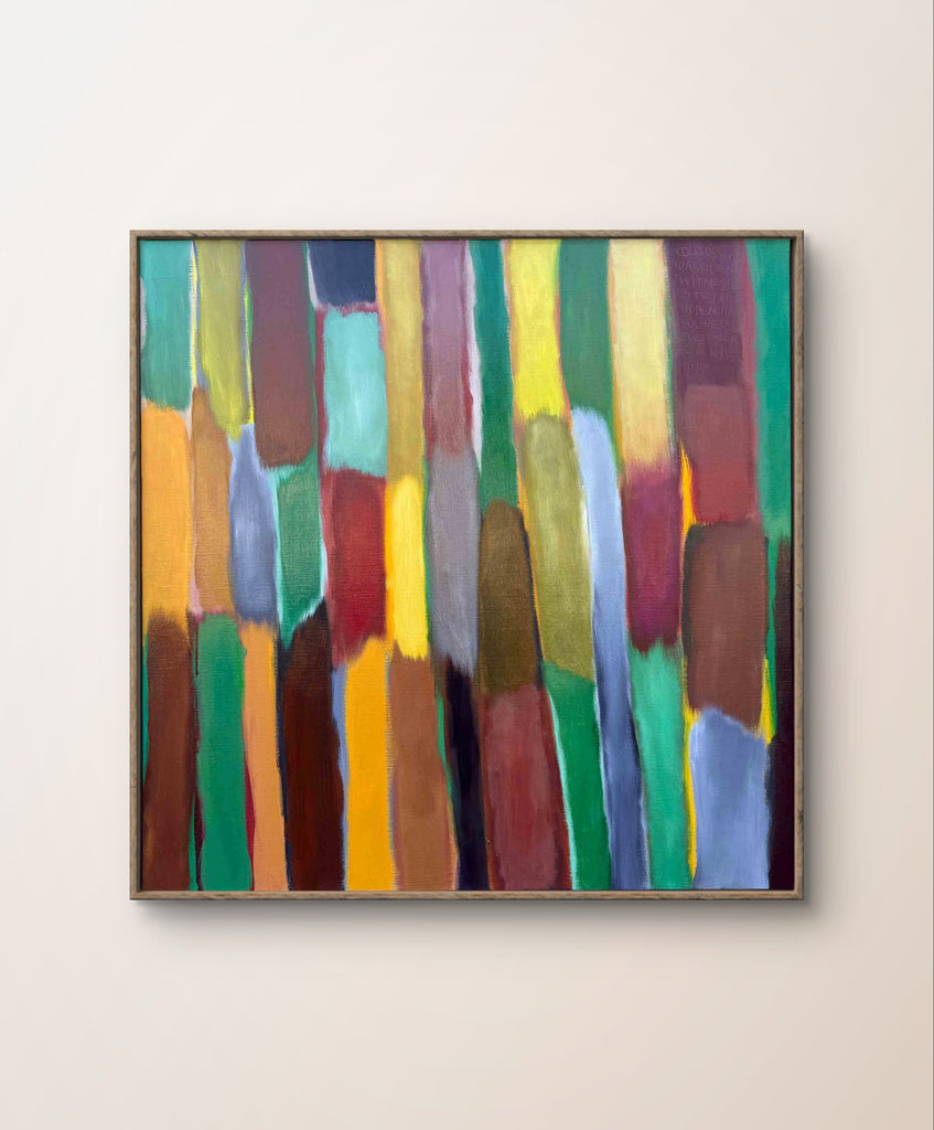 Dans cette exploration chromatique, les terres et les ocres racontent les différentes couches temporelles de notre expérience. Les verticales révèlent comment les teintes les plus profondes émergent à la surface de notre conscience, transformant l’imperceptible en vision partagée.