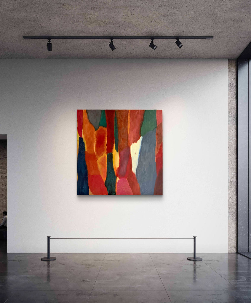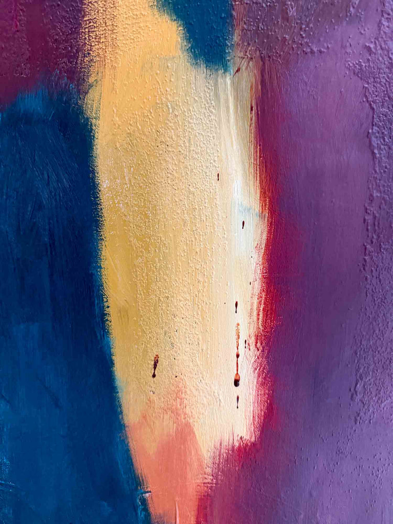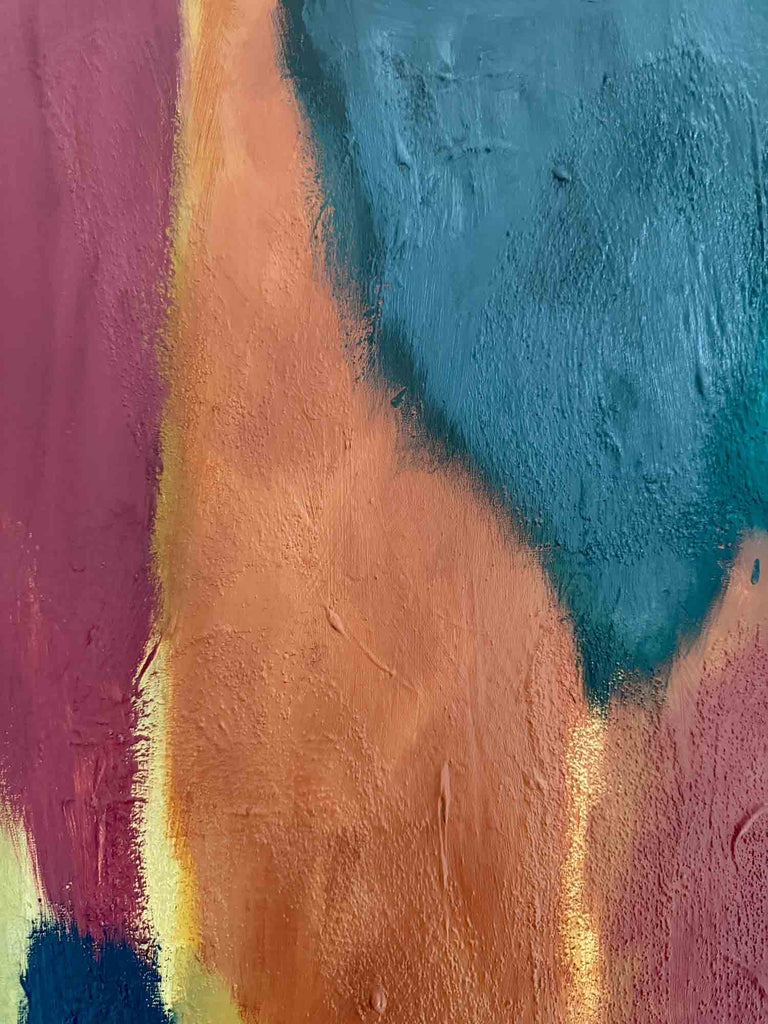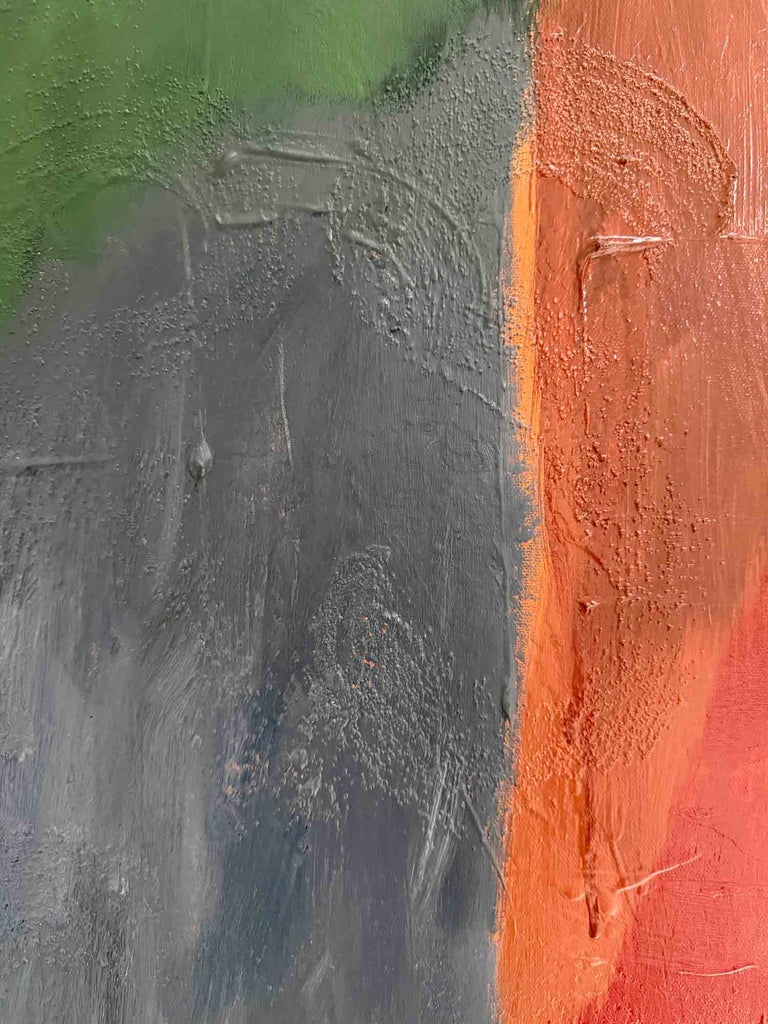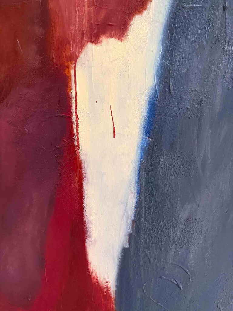 Cette toile porte en elle un palimpseste : sous les couches visibles se trouve un premier texte, "YOUR ELSEWHERE / OUR EXODUS”, gravé puis recouvert.