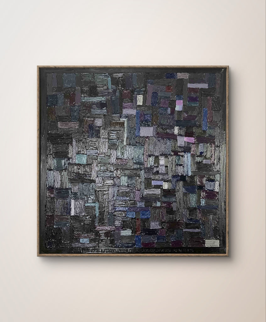 Dans ce monochrome noir, les nuances sombres et les formes entrelacées évoquent nos ombres et nos fêlures, tout en nous invitant à explorer les multiples prismes à travers lesquels nous choisissons de regarder le monde. Au cœur de cette œuvre réside le murmure silencieux : « Echoes of yearning, mirrored desires », une expression de notre désir profond d’être reconnus, même dans nos zones d’ombre, et de notre liberté de perception de la réalité.