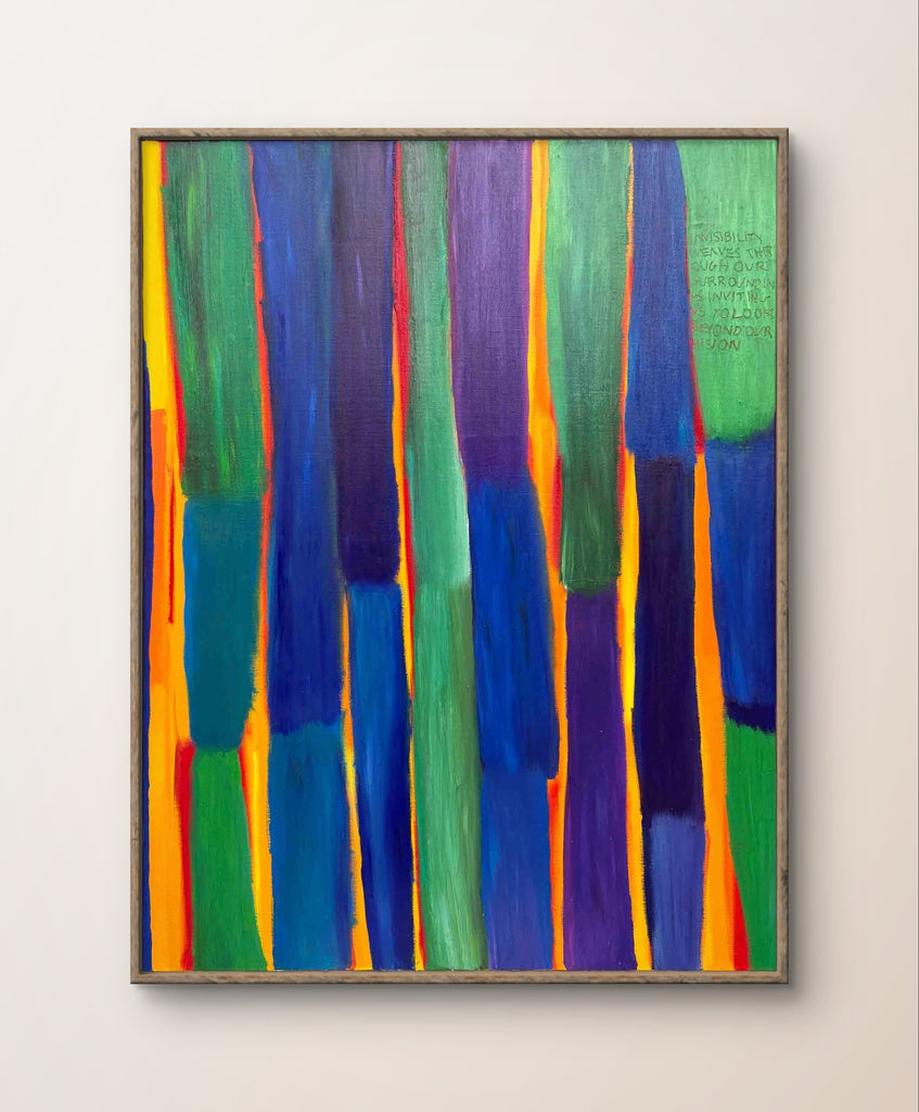Dans cette vibration de couleurs, le temps s’étire à l'image d'un crépuscule infini. L’œuvre invite à percevoir un espace où la conscience s’élargit et où les certitudes se dissolvent dans la lumière changeante.