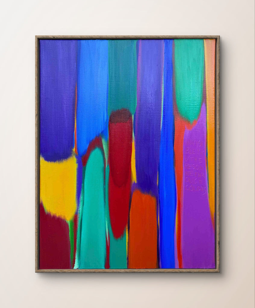 Les fréquences invisibles prennent forme sous le pinceau. Cette composition révèle les dialogues silencieux entre les couleurs, comme une conversation souterraine échappant à notre perception quotidienne.