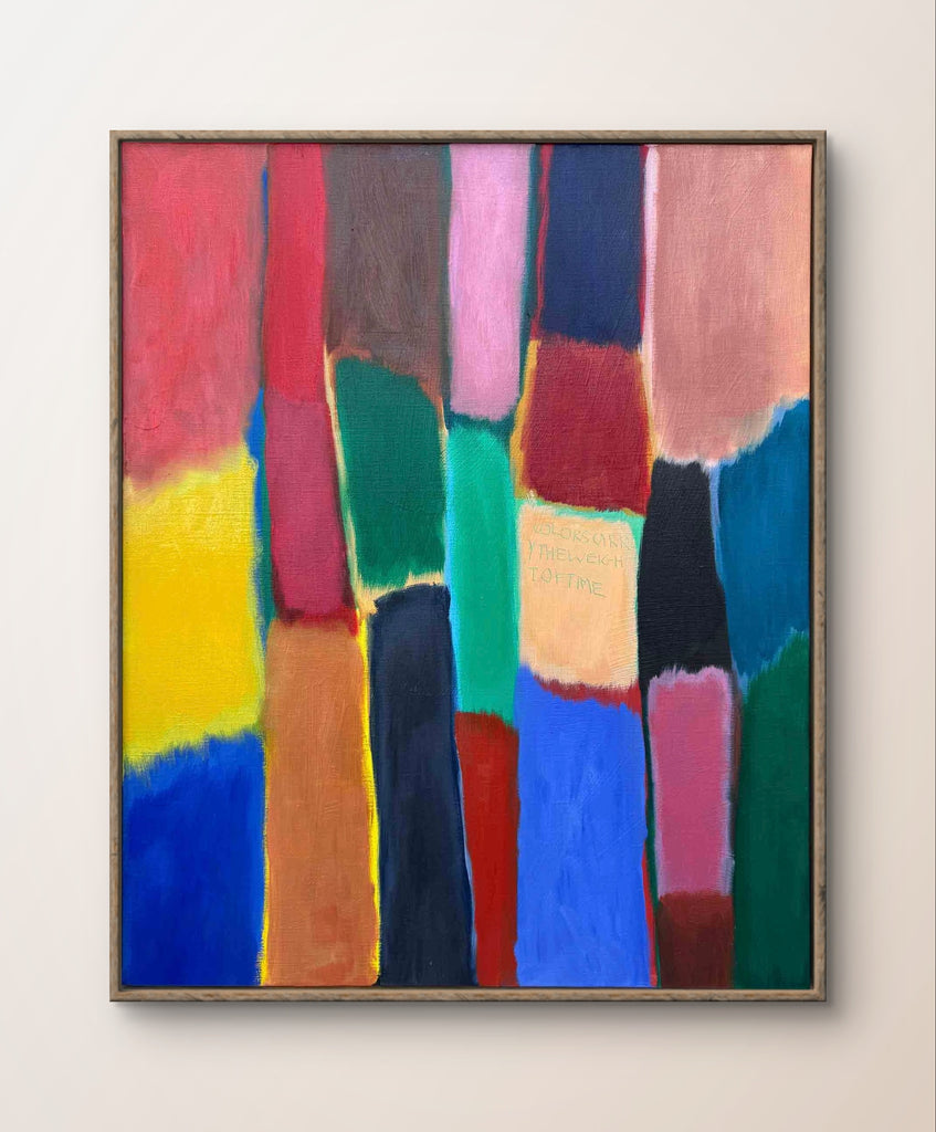 Stratification colorée où chaque teinte porte la mémoire du temps. Les couleurs se superposent comme nos souvenirs, créant de nouveaux dialogues chromatiques à chaque rencontre. Une archive visuelle de nos échos temporels.